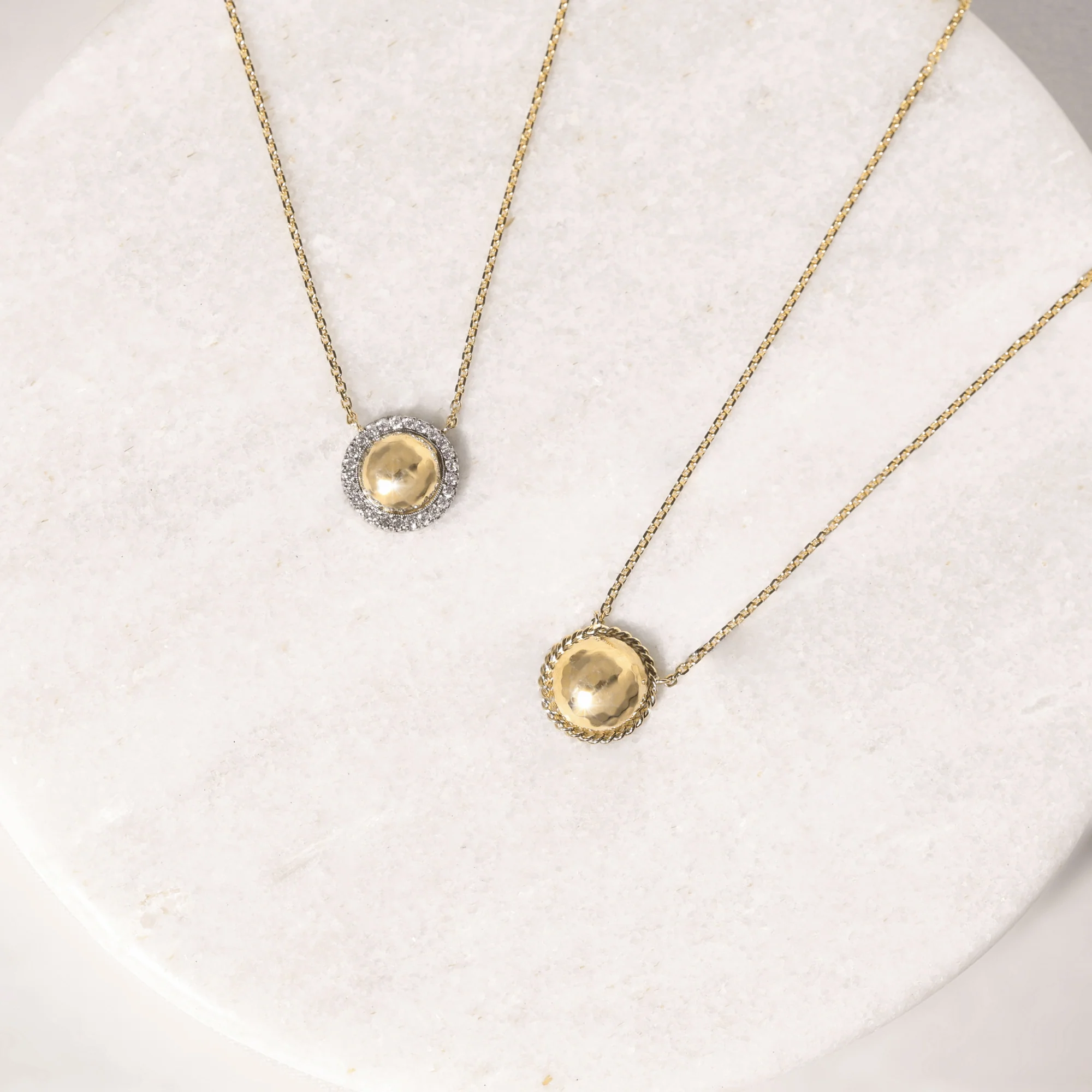 Aurelia Hammered Dome & Diamond Necklace - 18ct Yellow Gold