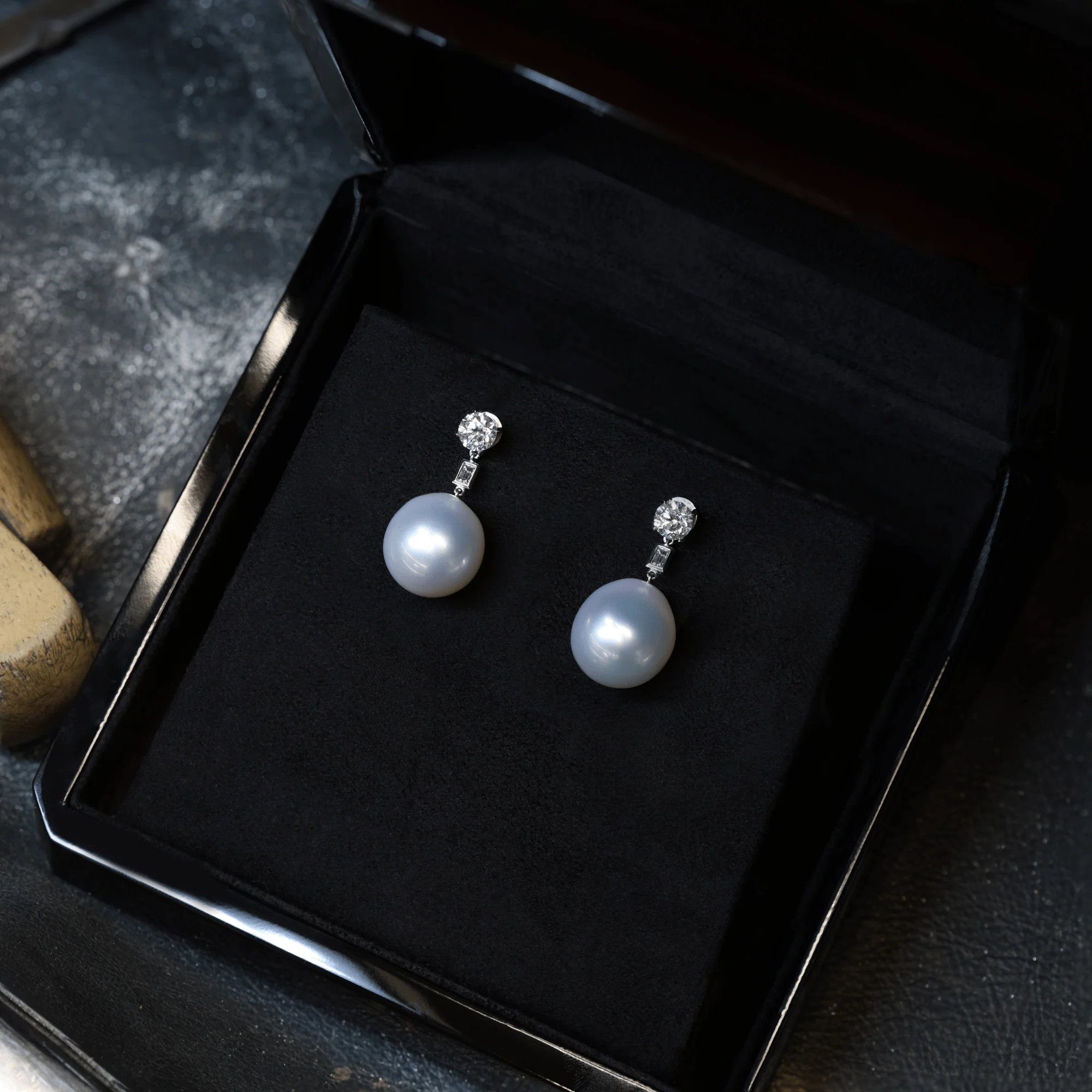Baguette Diamond with Baroque Australian South Sea Pearl Jacket Earrings
