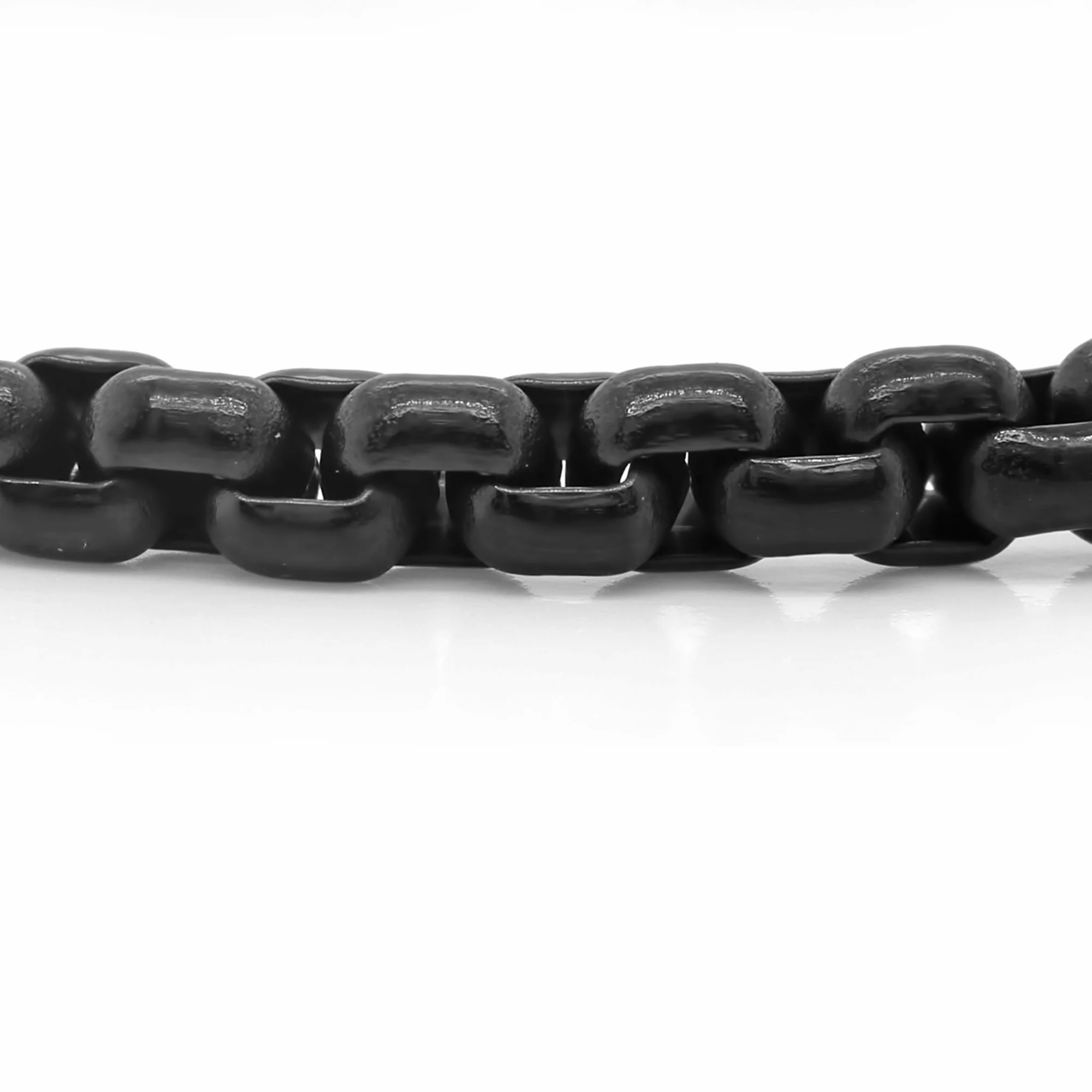 A 4mm titanium box link chain bracelet with carabine clasp closure and black PVD coating.