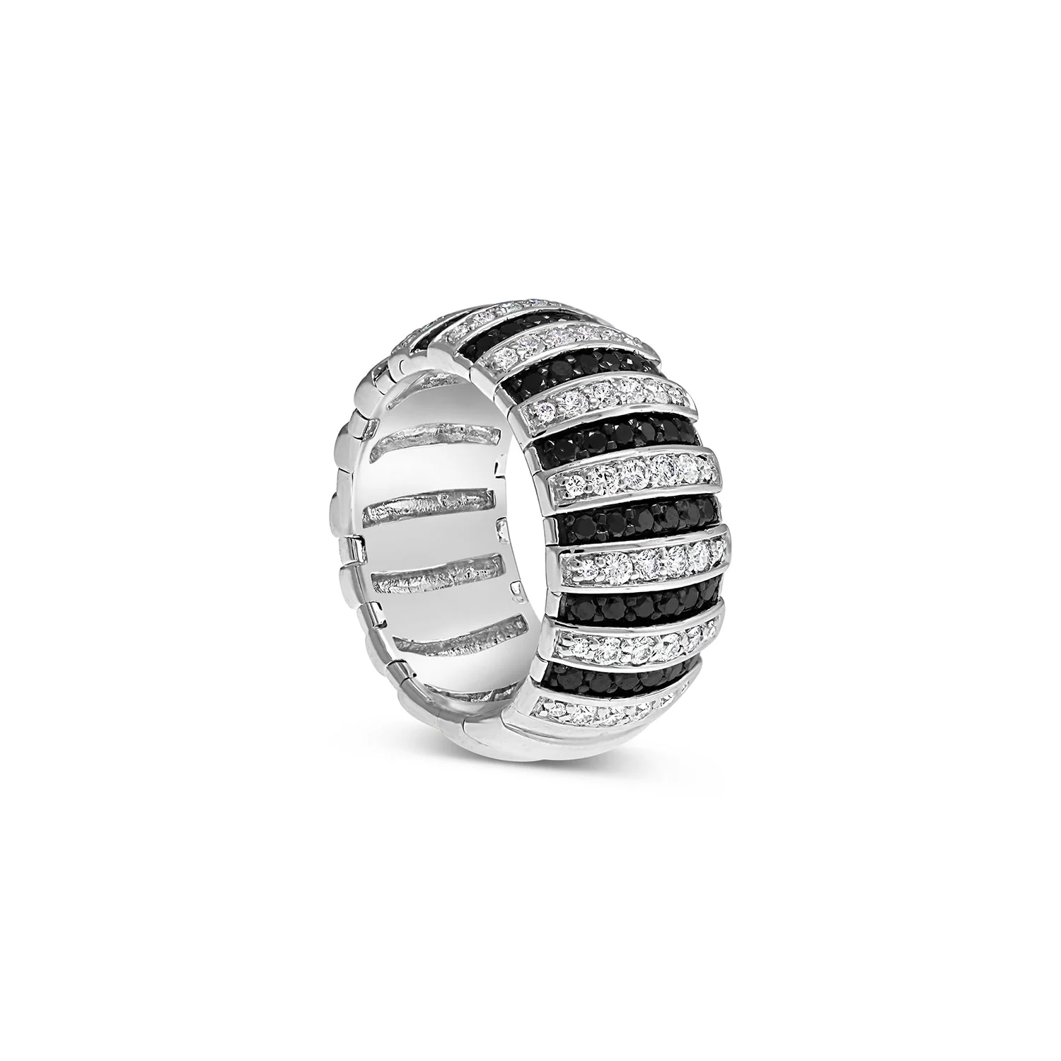 Black and white diamond dress ring featuring an alternating monochrome pattern.