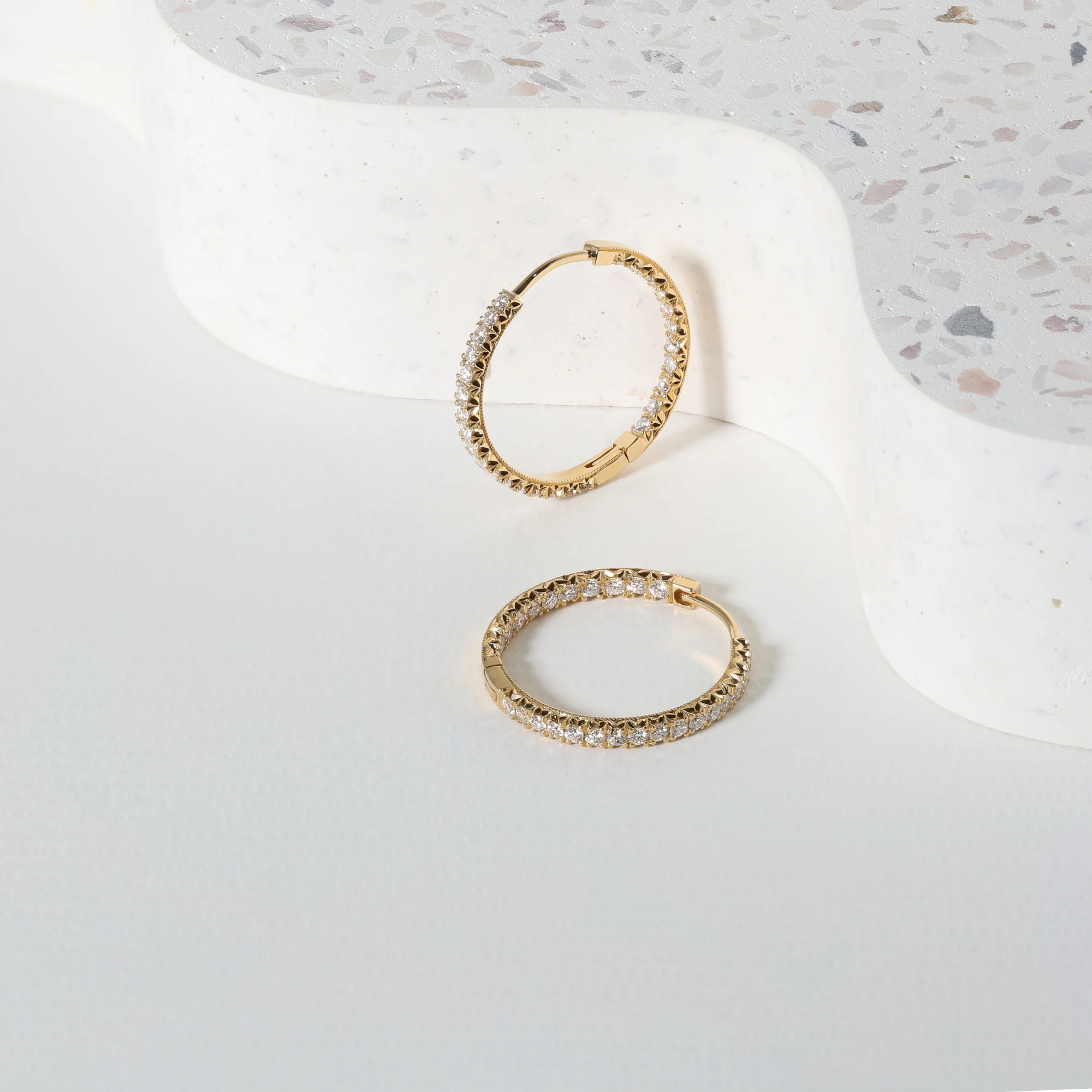 Dovetail-set Round Brilliant Cut Diamond Hoop Earrings - 18ct Yellow Gold