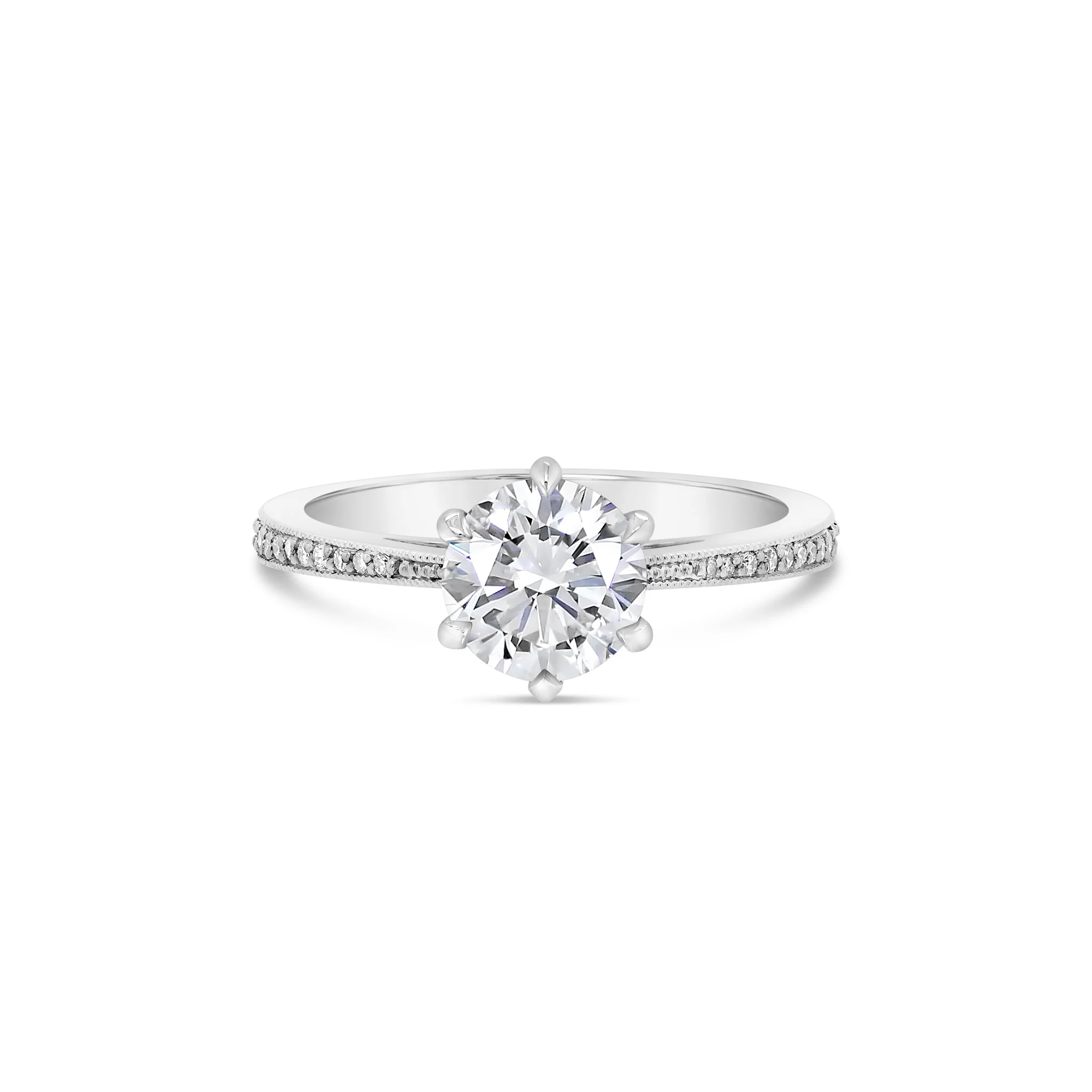 First Kiss Round Brilliant Cut Diamond & Milgrain Engagement Ring