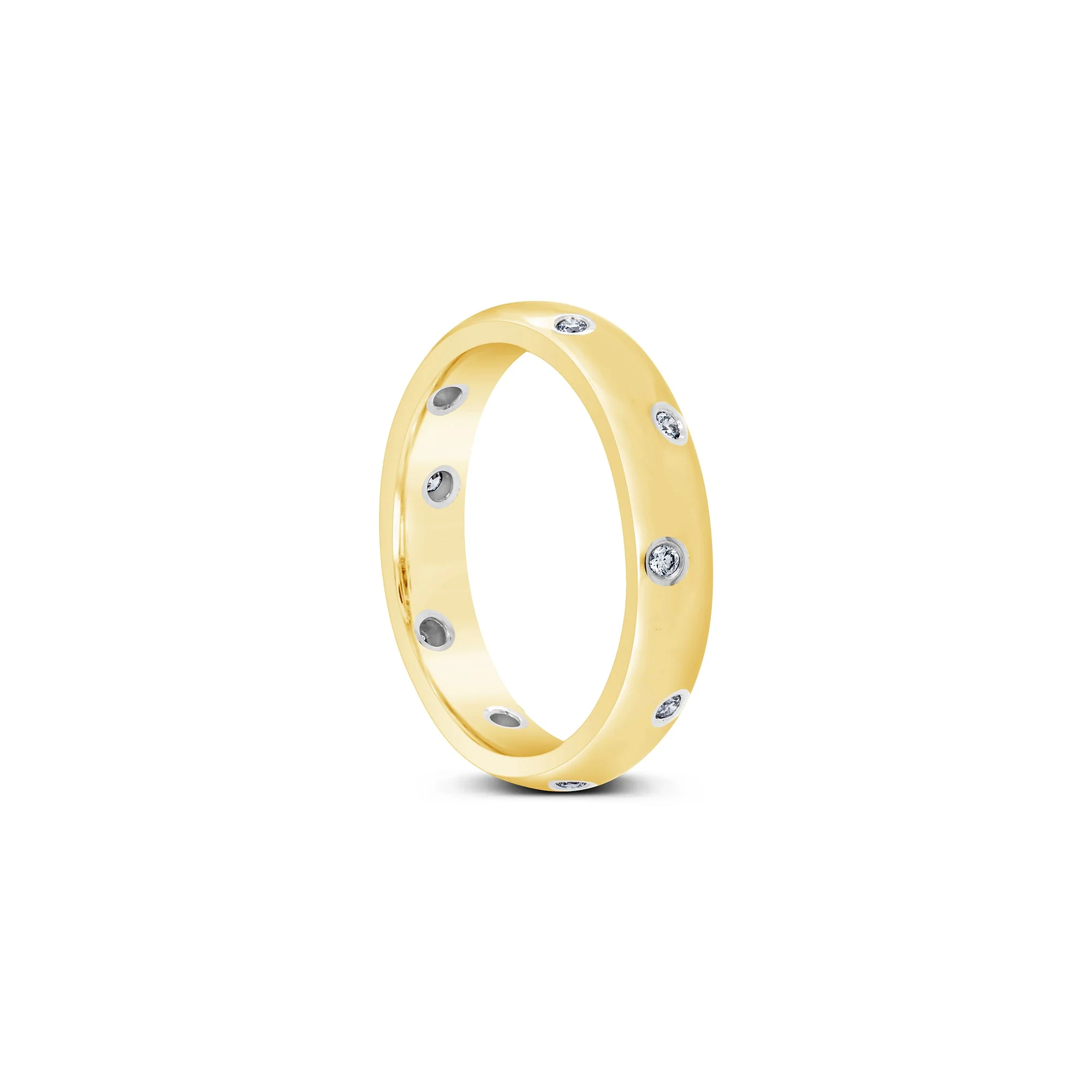 Modern & sleek, the Hammer-Set Round Brilliant Cut Diamond Jora Ring features a smooth, polished band made sprinkled with shimmering diamonds, expertly set in a hammer-set style that creates a unique and eye-catching texture.