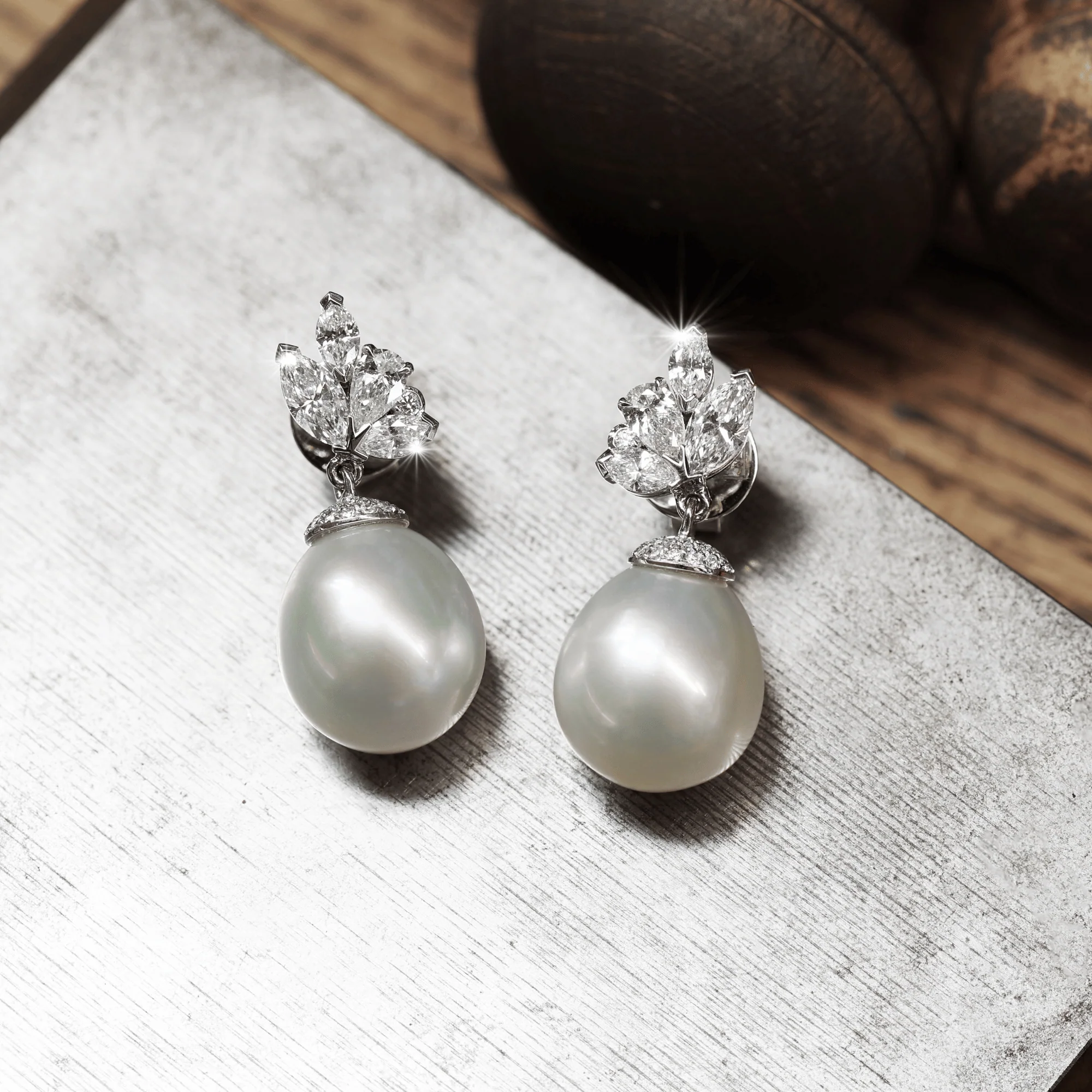 Indra Mixed-Cut Diamond & Australian South Sea Pearl Earrings