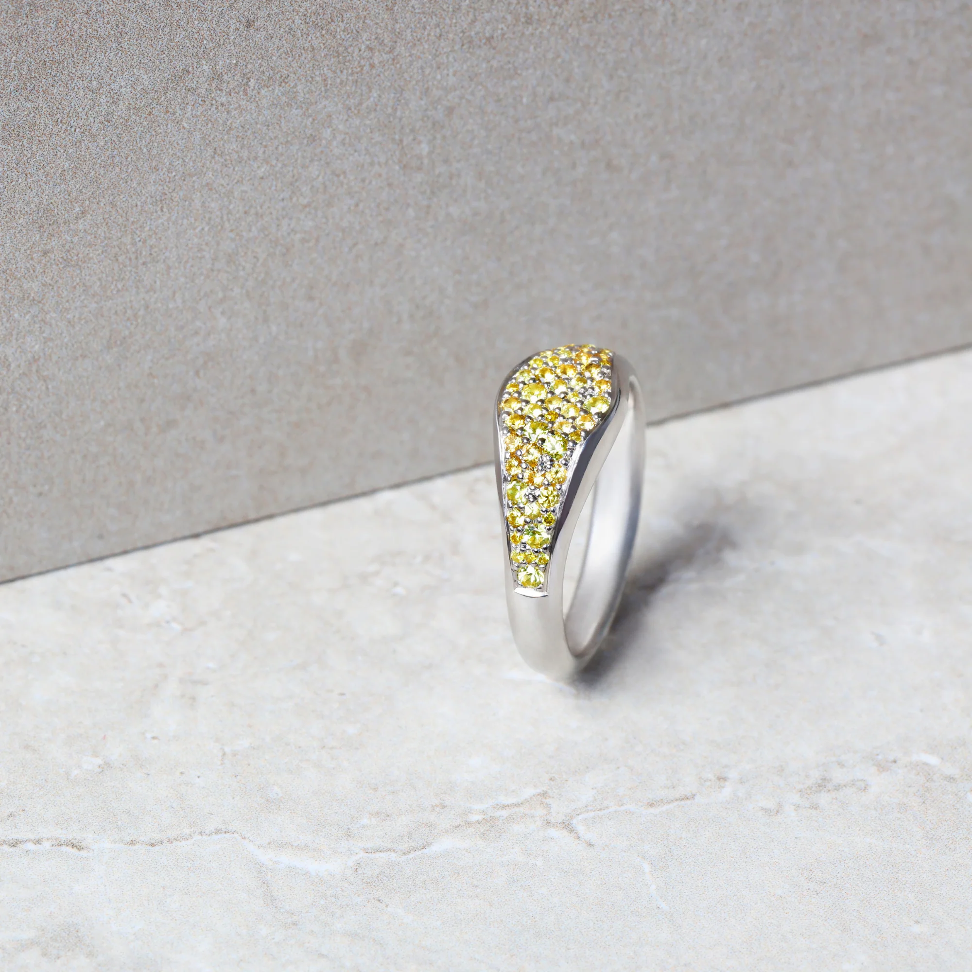 Pavé Set Yellow Diamond & Yellow Sapphire Signet Ring