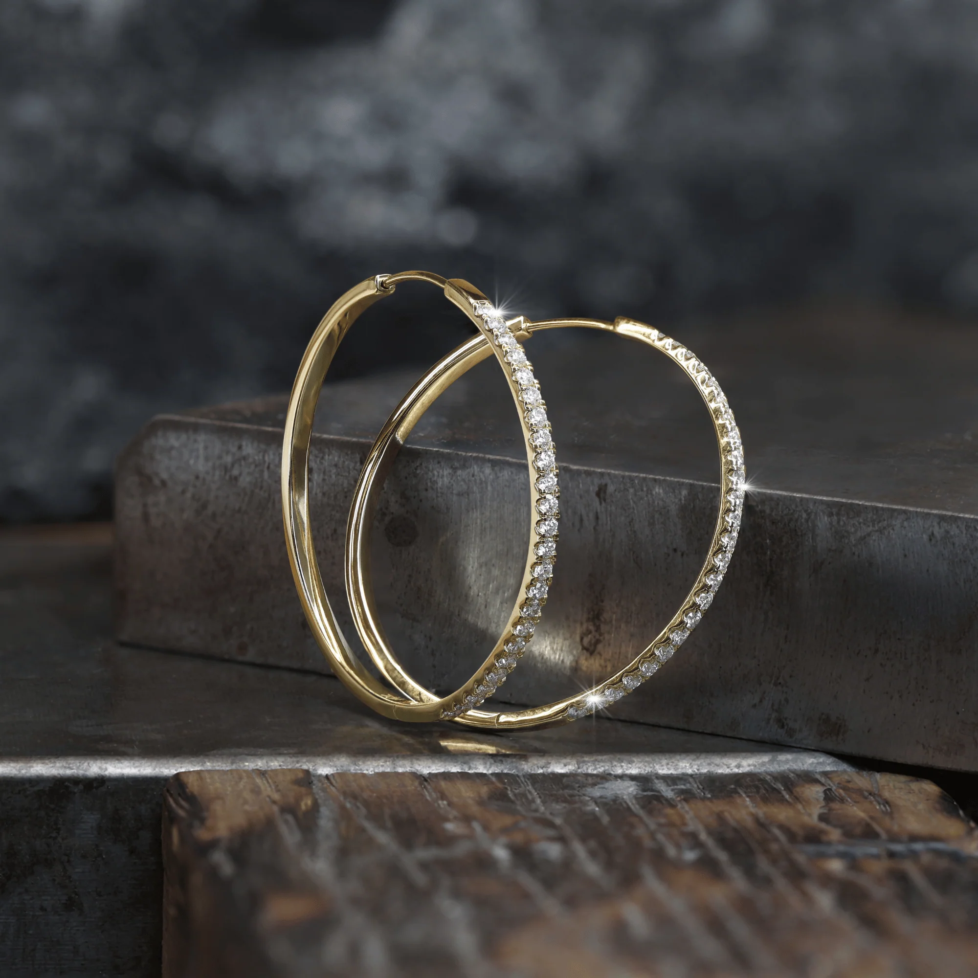 Round Brilliant Cut Diamond Fine Hoop Earrings - 18ct Yellow Gold