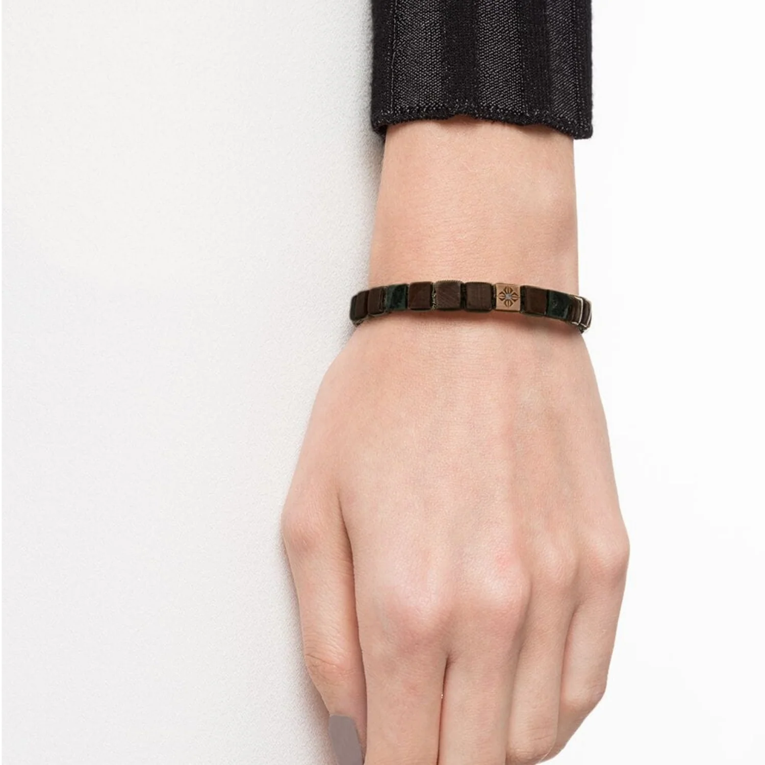 Shamballa 6mm lock bracelet with brown sapphires, green marble and the Star of Shamballa on a solid 18ct rose gold lock plate set with diamonds.