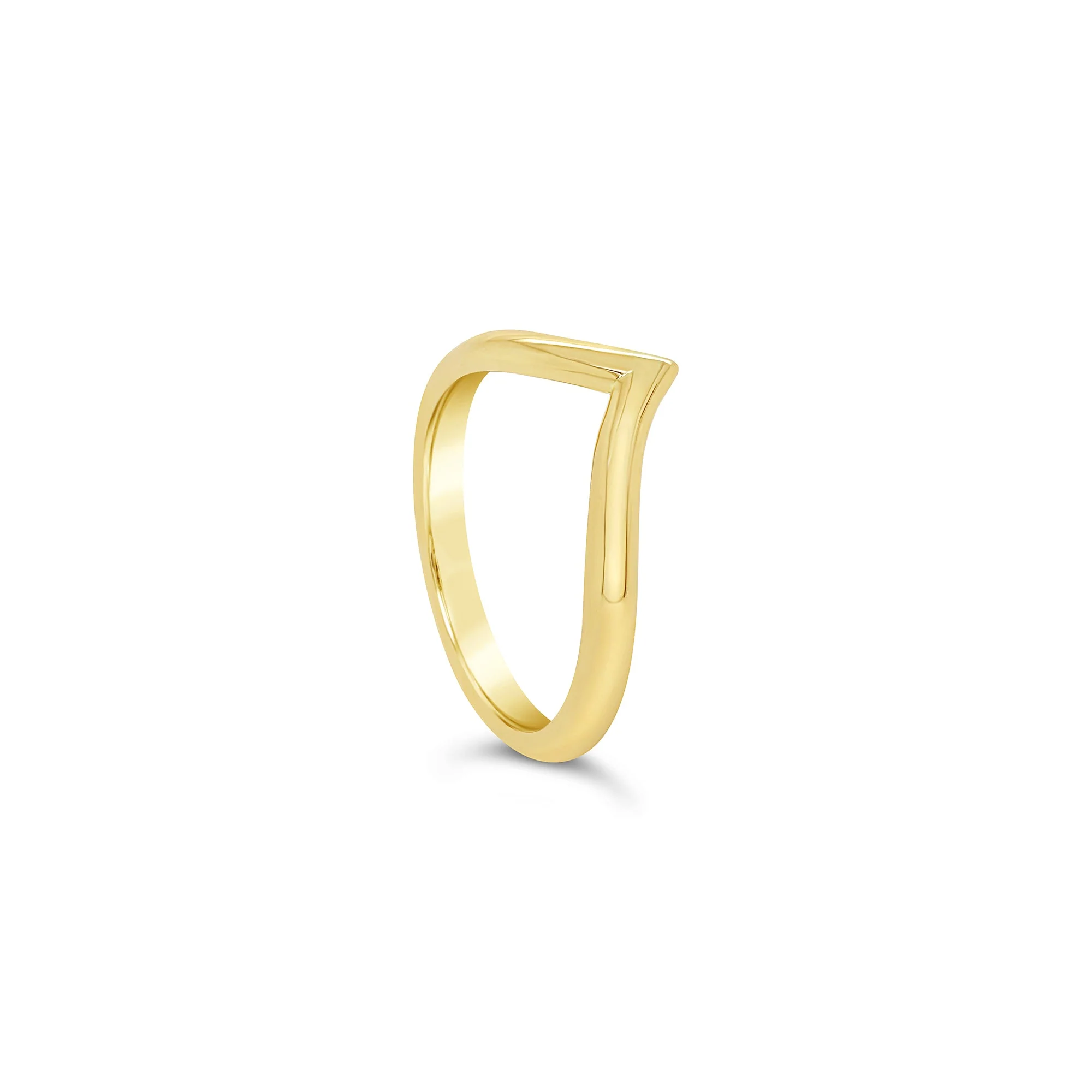 A unique, V-shaped ring crafted in 18ct yellow gold by our in-house workshop featuring rounded edges and a polished surface.